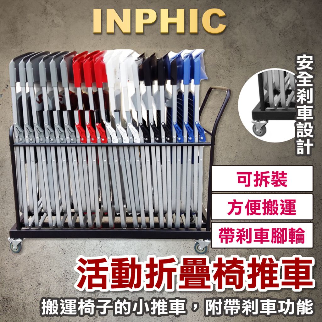 INPHIC-折疊椅收納車 折疊椅拖車 摺椅推車 搬運椅子小推車 活動椅拉車附煞車 禮堂折疊椅收納 活動中心折疊椅收納-IMWC010104A